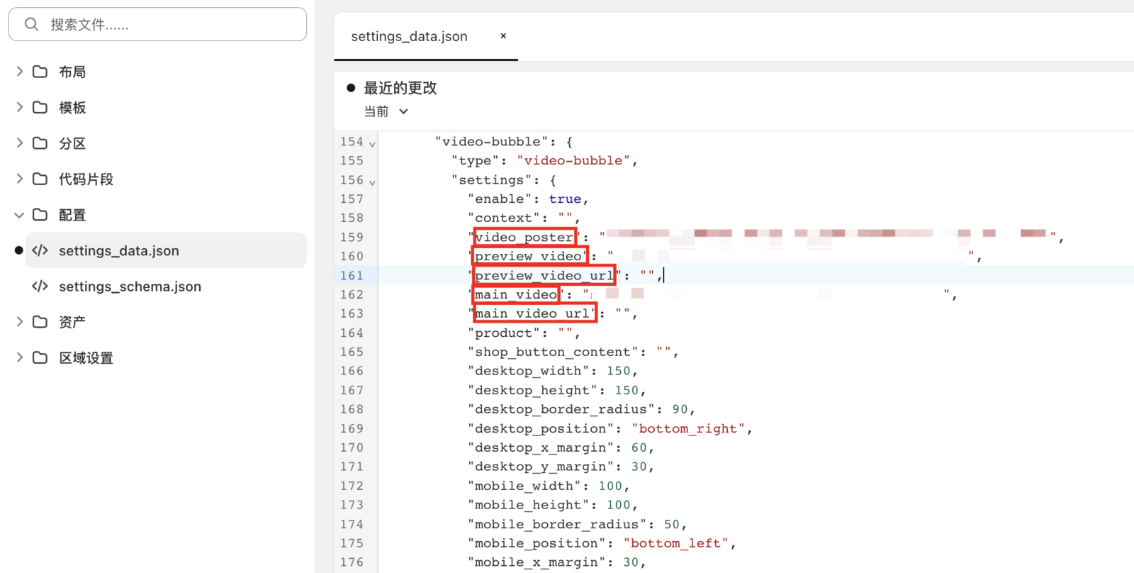 - 将其中 “video_poster”、“preview_video”、“preview_video_url”、“main_video”、“main_video_url” 对应的值删除即可