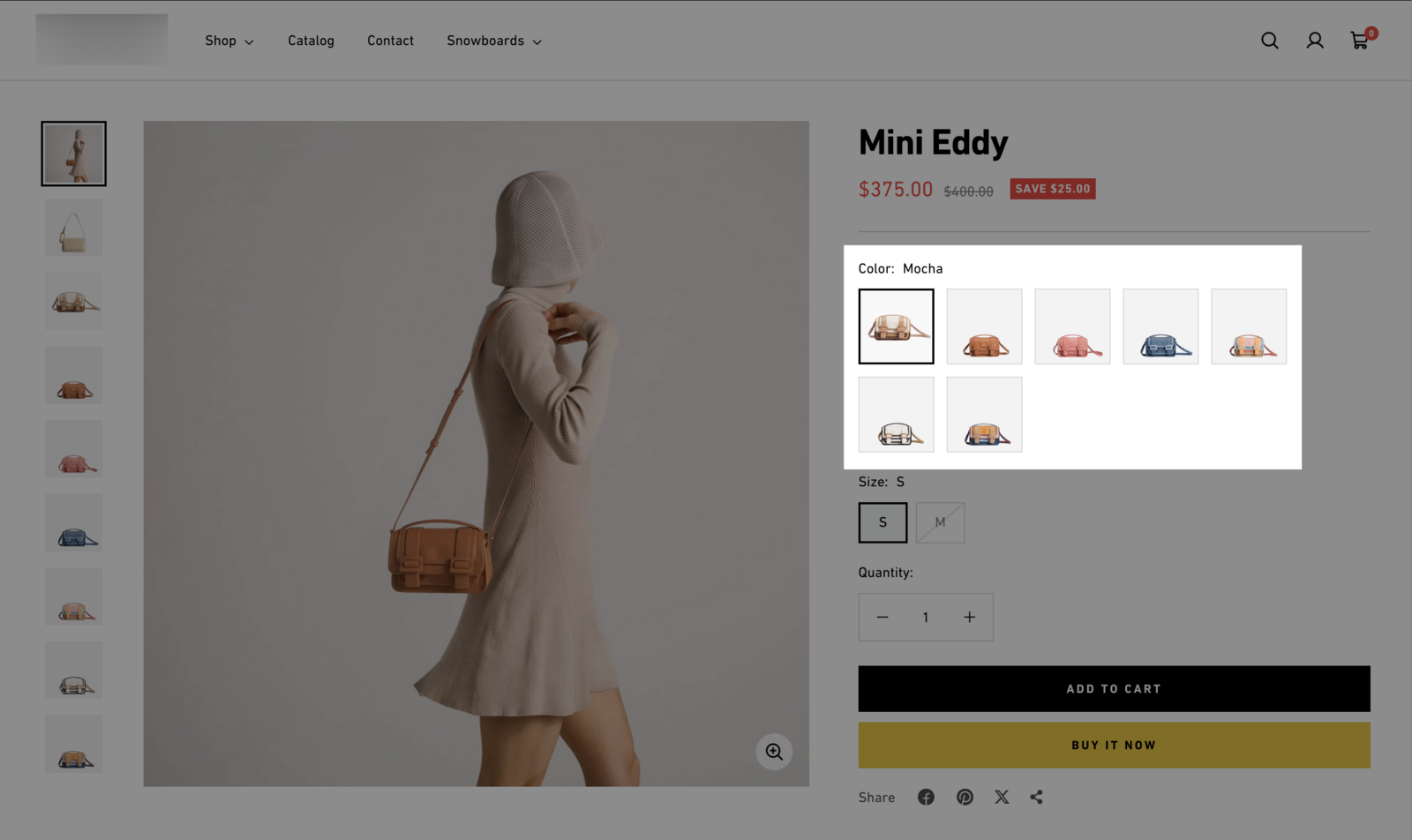 您可以向产品多属性添加图片,以便客户查看每种产品多属性。您可以从设备中添加新图片,也可以从现有产品图片中选择。
