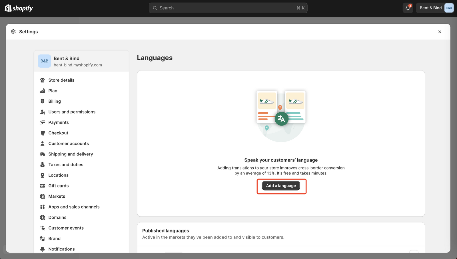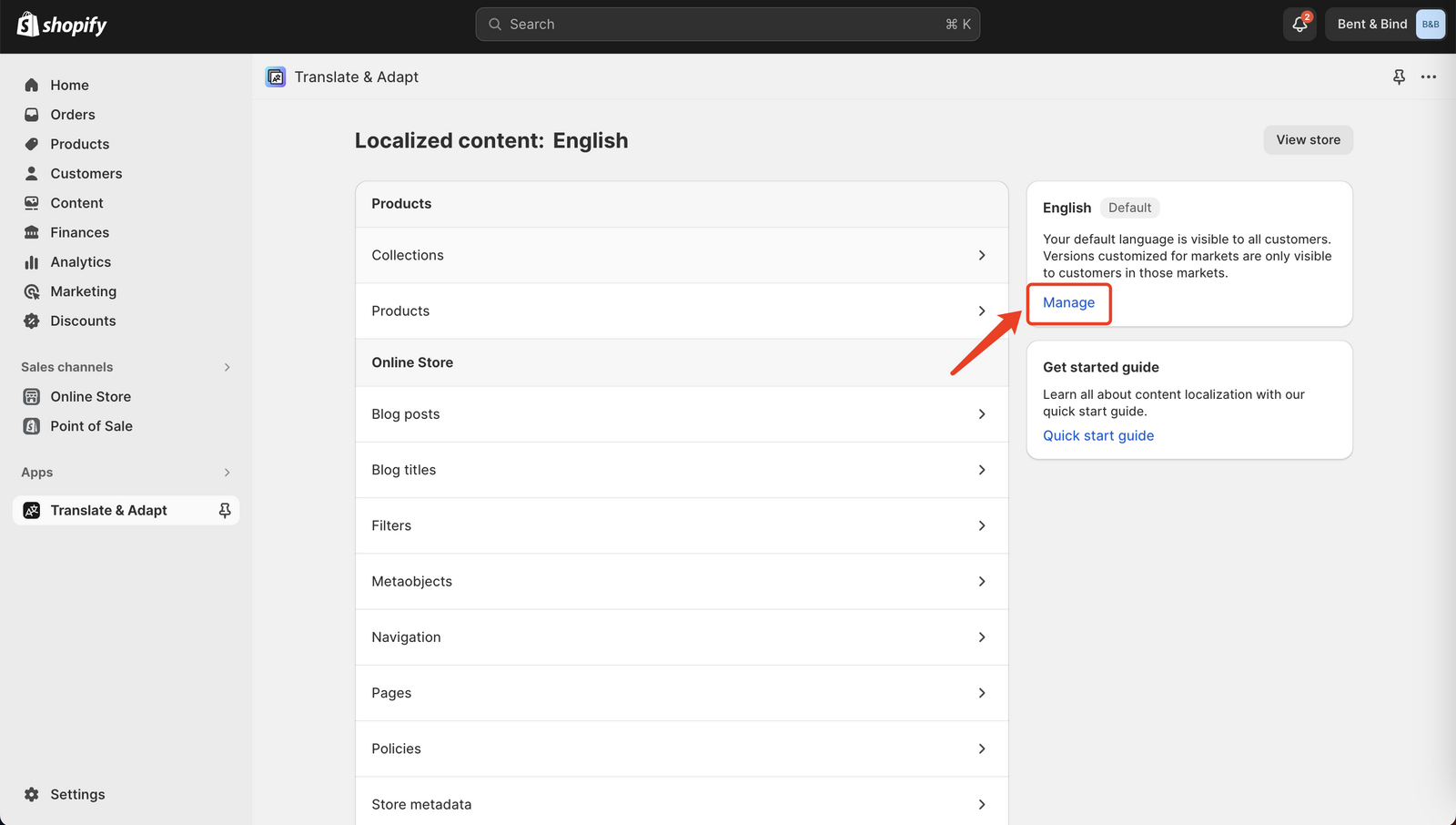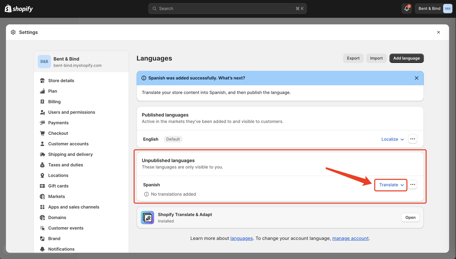 - Access Shopify Translate & Adapt: