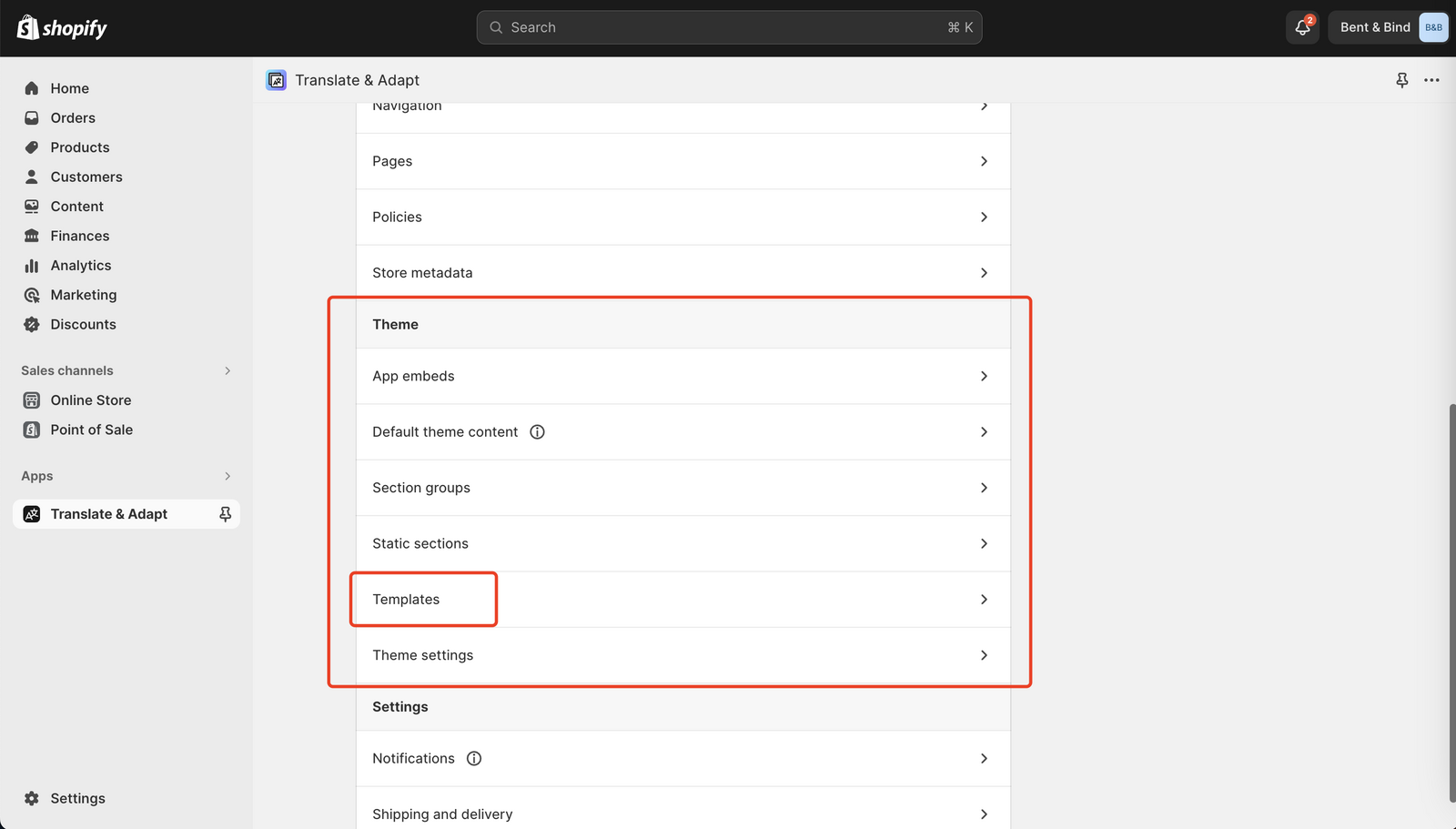 - Look for the “Theme” section and click on “Templates.”