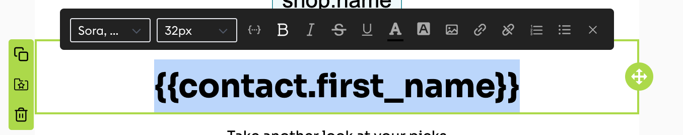 当我们点开 这个占位符的时候会发现,它其实就是 {{contact.first_name}}