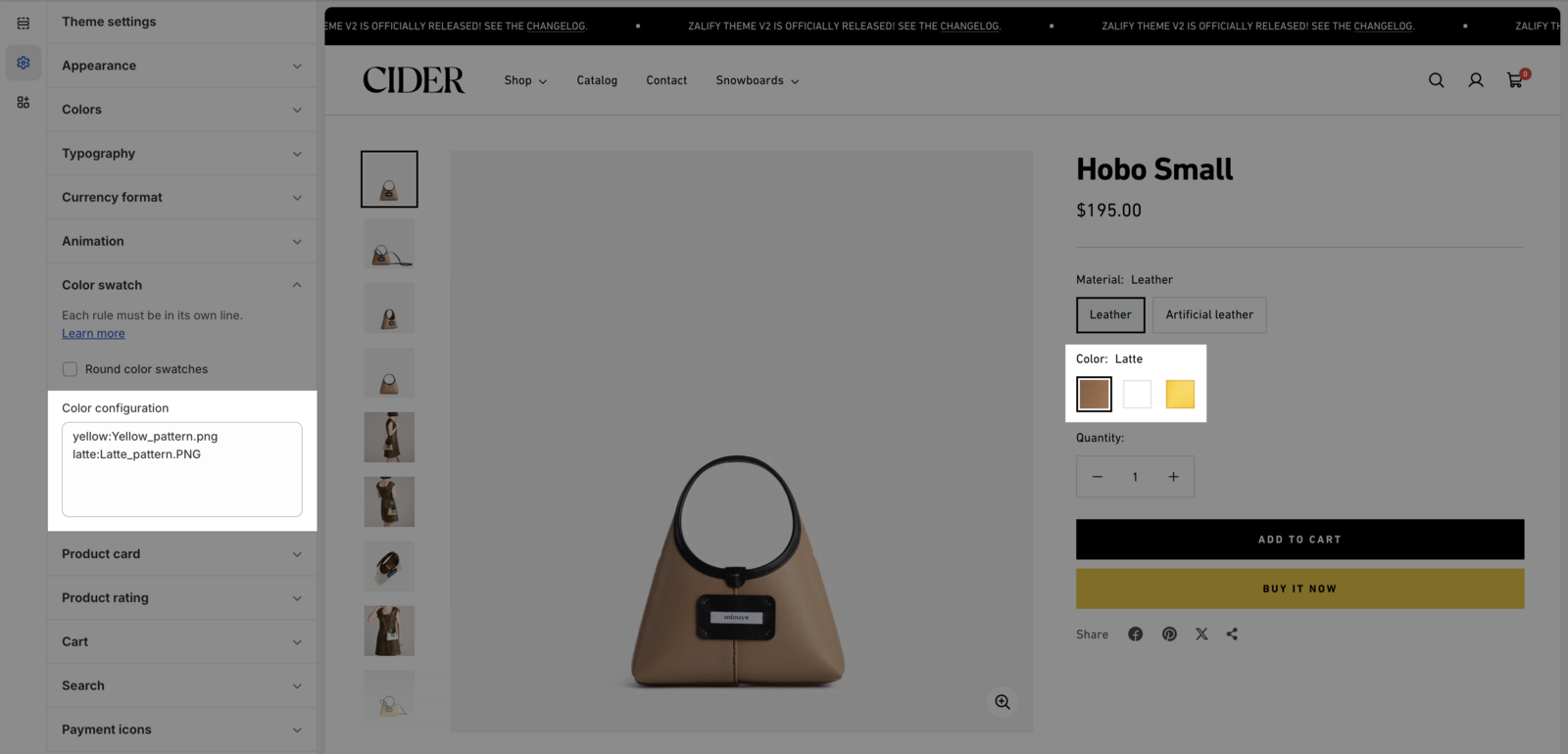 变体设置:产品颜色色板支持自定义图片